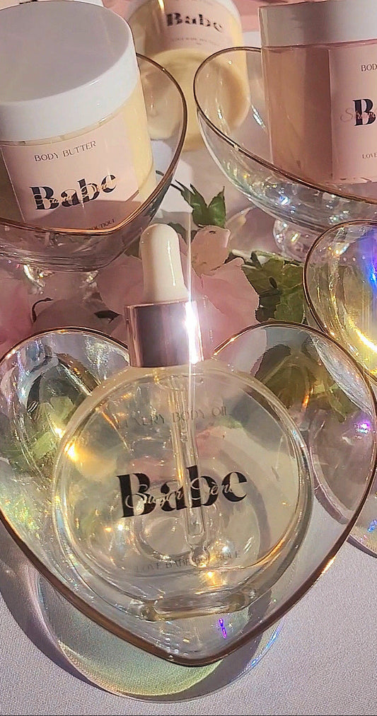 Love Babe Boutique's journey began back in 2020 as a women's clothing boutique, but has evolved into showcasing our small batch, hand-crafted Skincare Products. After our owner lost both of her parents in 2023, she needed something to help her cope with the losses. Inspired by her love of pampering & self-care, she was able to indulge in developing the delightful creations of our decadent body butters, body scrubs, bath salts & body oils. After receiving very positive feedback, she decided to continue her journey crafting more high-quality creations. Check us out in person at various vendor/craft shows. Or book us for a Luxury Body Oil Bar Experience!
