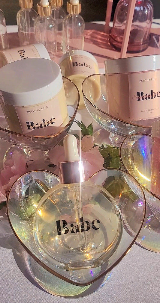 Love Babe Boutique's journey began back in 2020 as a women's clothing boutique, but has evolved into showcasing our small batch, hand-crafted Skincare Products. After our owner lost both of her parents in 2023, she needed something to help her cope with the losses. Inspired by her love of pampering & self-care, she was able to indulge in developing the delightful creations of our decadent body butters, body scrubs, bath salts & body oils. After receiving very positive feedback, she decided to continue her journey crafting more high-quality creations. Check us out in person at various vendor/craft shows. Or book us for a Luxury Body Oil Bar Experience!